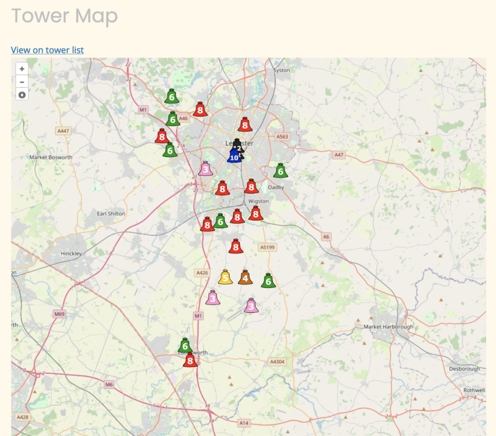 The latest update to the webpages are now online. The main feature that has gone live is the addition of maps to the towers pages. Each individual tower page has a map showing the location of the tower, and we also have an overall maps page. The menu item which was named “Towers” has been renamed “Bells” and drops down to two main pages: “Tower List” and “Maps”.